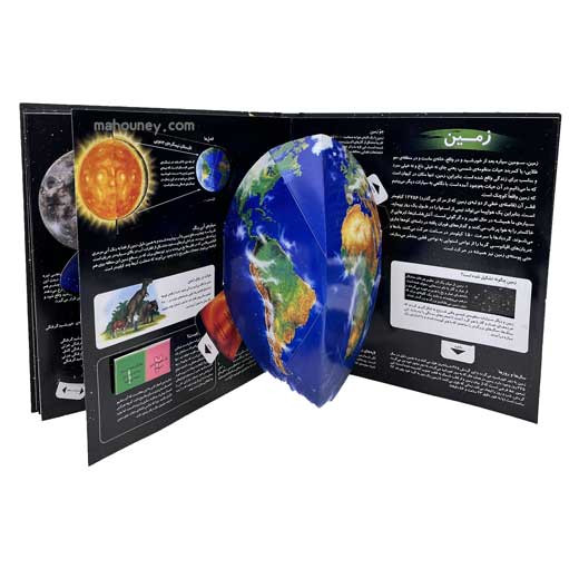 در بخشهای بعدی کتاب واقعیتهای سه بعدی از فضا با خانواده خورشید آشنا میشویم. کتاب اطلاعاتی درباره اجرام آسمانی نزدیک به زمین شامل خورشید، ماه، ستارهها به ما میدهد.خورشید برای ساکنان زمین بسیار پراهمیت است خورشید با گردش به دور خود، روز و شب را به وجود میآورد و با گردش به دور زمین سالها را به وجود میآورد. بدون خورشید قطعا حیات در زمین به پایان میرسد.ماه، دیگر جرم آسمانی نزدیک به زمین میباشد که دانشمندان در تلاشاند نشانه هایی از حیات در آن بیایبند. سفر فضانوردان به سطح ماه در سال 1959 یکی از شگفت انگیز تزین دستاوردهای بشر بوده است. به جز زمین سیارات دیگری نیز در منظومه شمسی کشف شده که دانشمندان توانستند اطلاعاتی دربارهی آن کسب کنند و در اختیار ما قرار دهند.